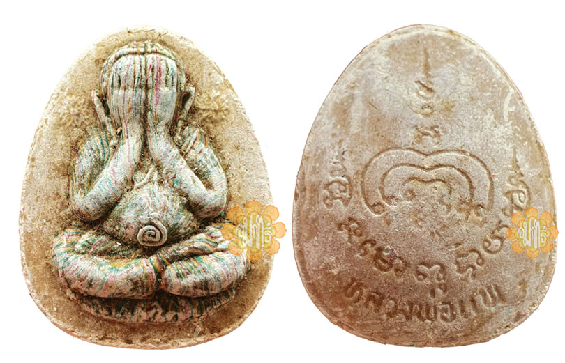 Made in Year B.E. 2531 by Luang Phor Pae, Pidtaa 1st batch Linser Jambo size ( XL size ) phoong material with Luang Phor hairs & 2 takruts embedded at the bottom of the amulet.