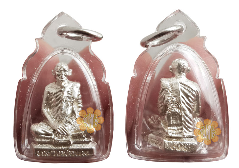 Image of Luang Phor Pae made in year B.E. 2517 (1974) when Luang Phor was 70 years old . Silver material made and consecrated by Luang Phor Pae. Date printed on the side of the amulet and "quote" imprinted on the base of the amulet and "Kring" too. Same year Luang Phor made the "Jackie 2517 Somdej phim "