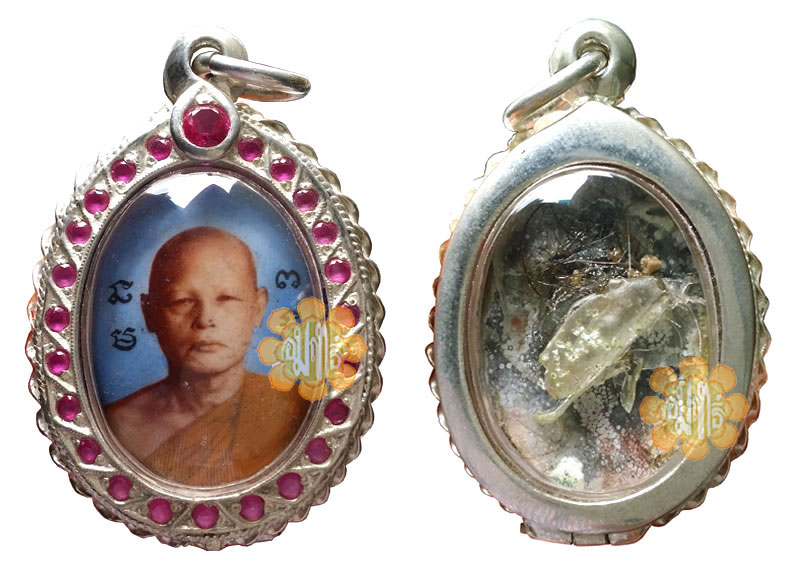 Image of Luang Phor in coloured Enamel locket form made and consecrated in year B.E. 2508(1965) embedded with Luang Phor Gaaysaa (Hairs) and candle wax. 1st Batch.