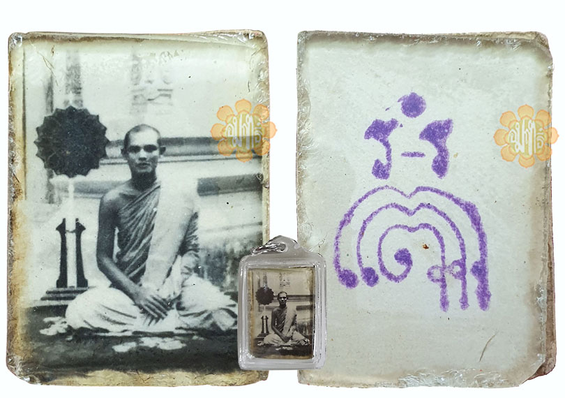 Image of Luang Phor in Black/White photo form "LoopThai" laminated on Glass and consecrated in year B.E. 2508 (1965) with Yaant PudSorn at the back cased.
