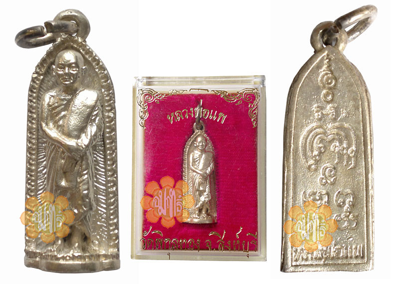 Made in Year B.E.2525 by Luang Phor Pae, Image of Luang Phor standing in Silver material .