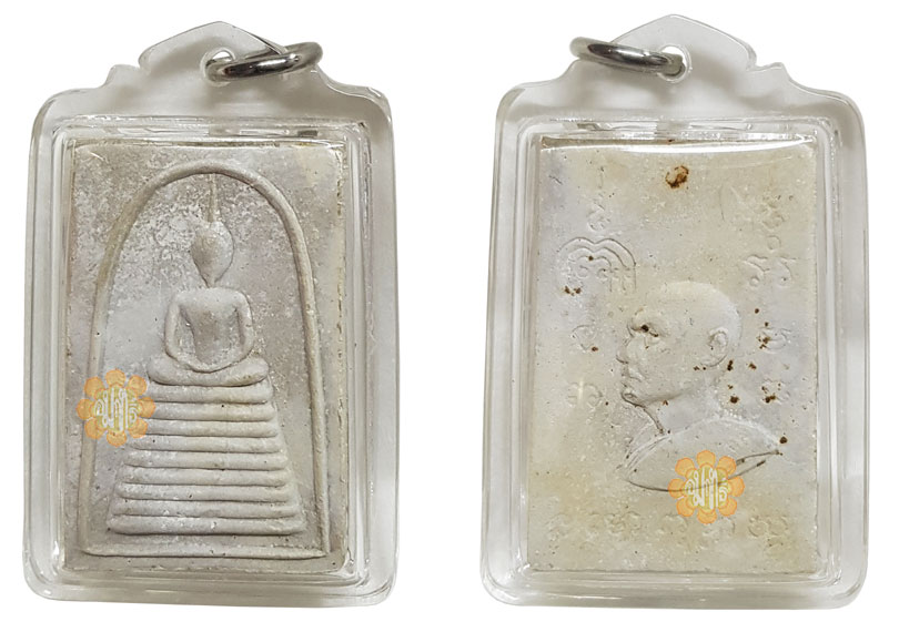 Made in Year B.E. 2515 and consecrated by Luang Phor Pae this white phoong Somdej was made with Luang Phor image at the back.