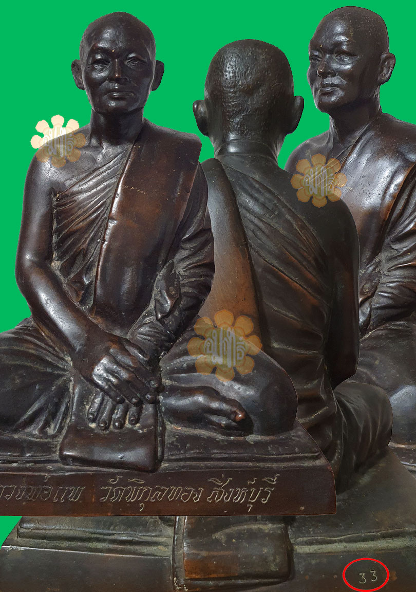 This Image Luang Phor Pae was made in year B.E.2510, the second Image of Luang Phor himself as he was 62 years old. Special phim because only 999 pieces made and individual itemized on each image. This Statue is numbered 33. Luang Phor used the same mould as the First image (2508) to cast this image.