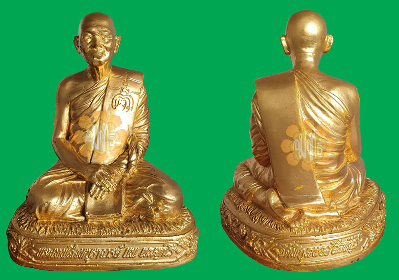 Image of Luang Phor Pae (Loop-Laaw) Kala-Thong Originally made and consecrated by Luang Phor in year B.E.2535 (1992) sitting on a Grass matt. Phim Tii Sip-Haa ( The Fifteen Phim made by Wat Pikul Thong ).