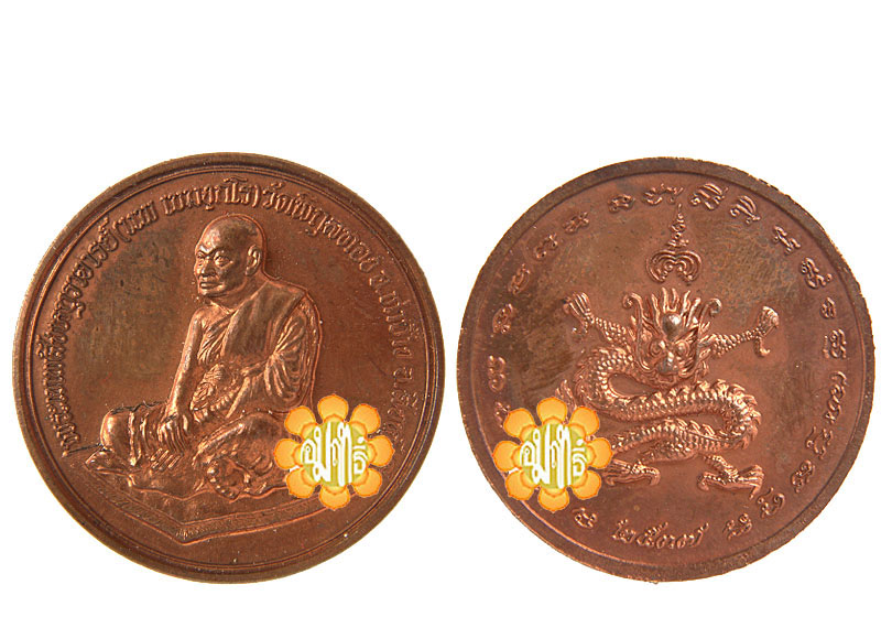 Image of Luang Phor Pae was made and consecrated in year B.E. 2537 by late abbot of Wat Pikul Thong temple, Dragon in this Round Rian symbolized power and prosperity at the back of this amulet.