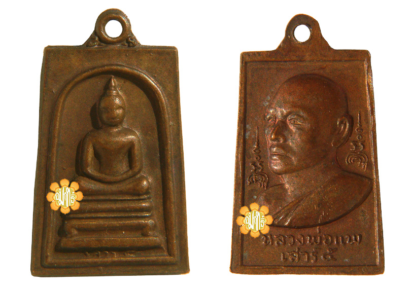 Image of a Small Somdej and back image picture of Luang Phor Pae, made in year B.E.2523 (1980 ) Phim Saaw Haa