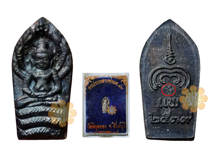 Made in Year B.E. 2539 and consecrated by Luang Phor Pae this was theThird batch of Naa Prok made of re-cycled metals from the temple at that time. Casting method and Believed to protect the wearer from harm and weapons. Mint , Original condition with temple Box.
