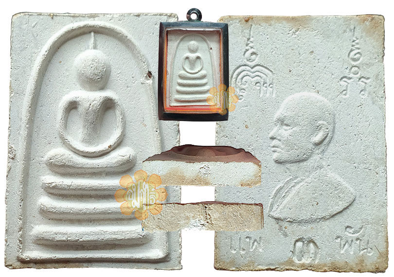 Made in Year B.E. 2516 (1973) and consecrated by Luang Phor Pae. The Second batch of Pae Saam " Kaiser " niyom Somdej Pae Saam Paan very popular as it using the same Mould(Bloc) of made for Pae Saa Paan Laek. With Gold Takrut embedded at the bottom of the amulet.