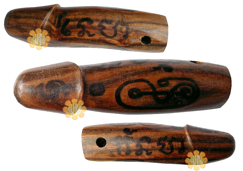 Parakit made in Year B.E. 2551 by Achaan Keow of Wat Hui Ork in Patanee province, Item with hand incribed "Yan" logo of Achaan Keow on this hard wood parakit (centre pic ).