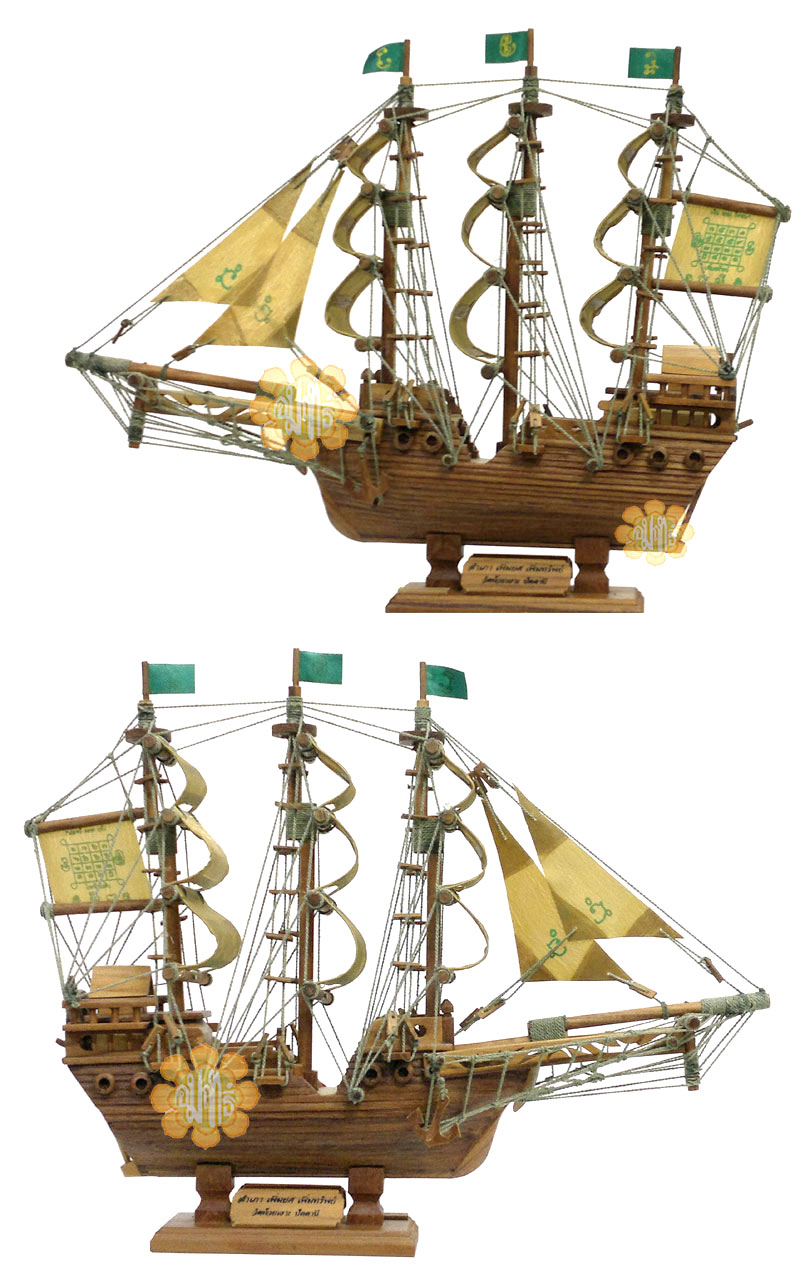 This Ancient Ship was made in Year B.E. 2555 consecrated by Achaan Keow of Wat Hui Ork in Patanee province, Item with Achaan Keow "Yan" logo printed on the flags of the ship. Available at Wat Hui Ork for 2,000 Bahts .