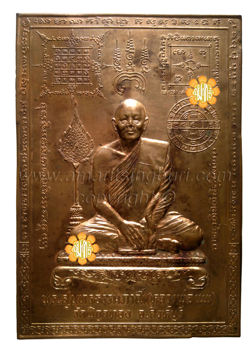 This was the first metal plate made to commerate Luang Phor . They were made by Luang Phor Pae of Wat Pikul Thong in year B.E. 2529.