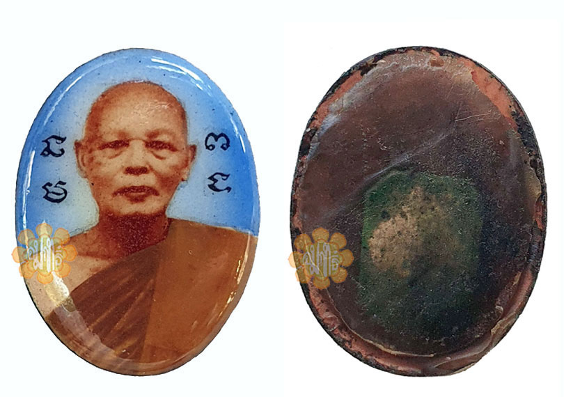 Image of Phra Luang Phor Pae (Small Locket ) in coloured glazed Enamel amulet , Made in Year B.E. 2508 consecrated by Luang Phor Pae of Wat Pikul Thong.
