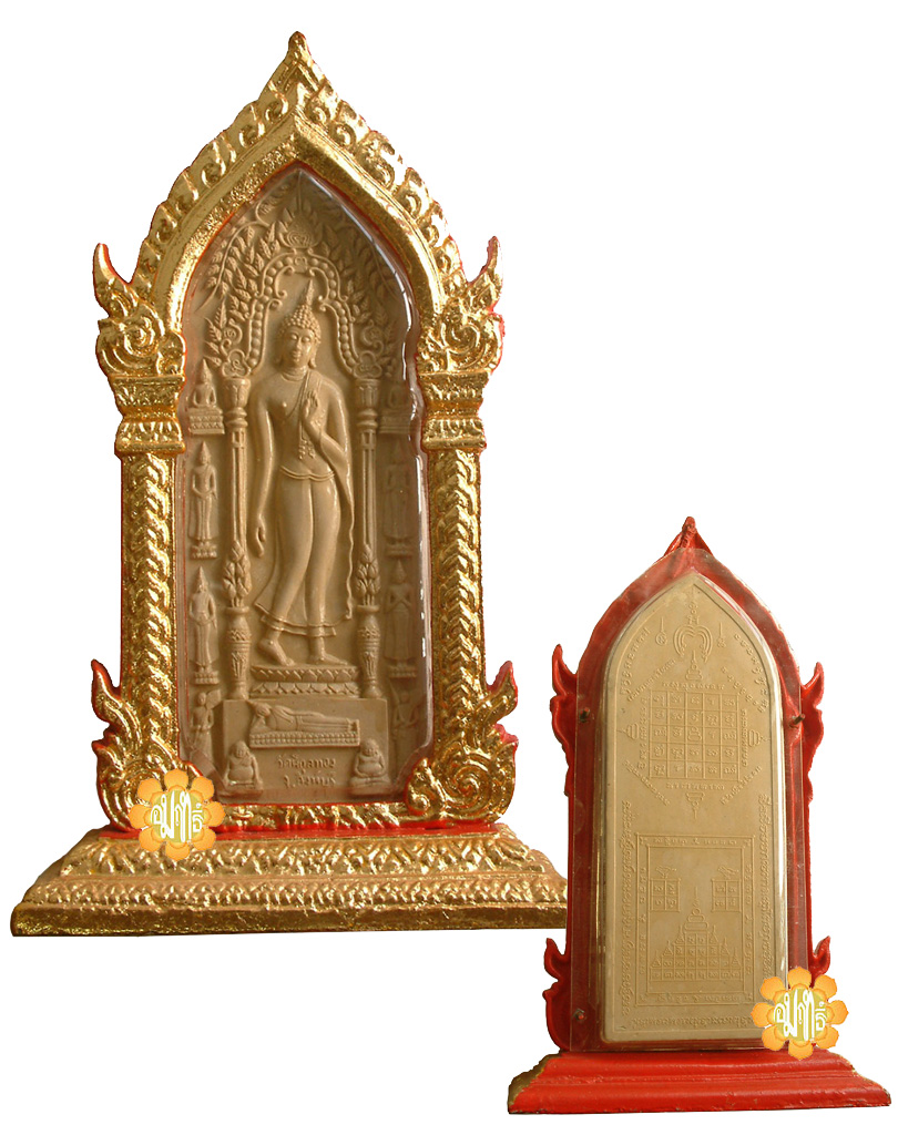 This Worshipping Image of Lilaa in slab from the temple and was consecrated by Luang Phor in year B.E. 2520. There were two models of this kind one of the other was made of Bailan (Burnt Scriptures )