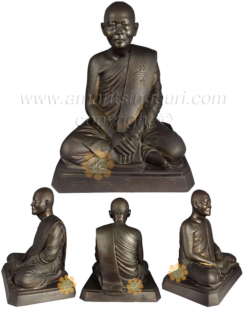 Image of Luang Phor Pae sitting on a Square base was made in year B.E.2528 (1985 ) to commemorate Luang Phor 80 year Birthday . 80 pieces made . Take note of the 4 sides of the base as all side were engrave with Thai wordings.