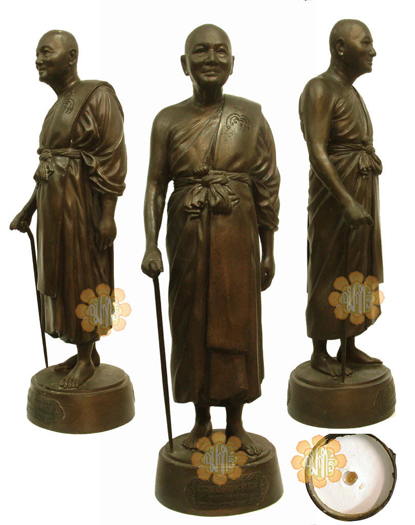 This Image Luang Phor Pae of height 21 inches was made in year B.E.2536. It was made in a " make to order " basis. All individual statues has it very own numbers and in the bottom of the Statues there was "honey" cased into it by Luang Phor. A Paat Tuck was also inserted. ( Pat Tuck was a sarari "remains" of a high monk after the body was cremated - moronat ). All Statues with itemize numbered.