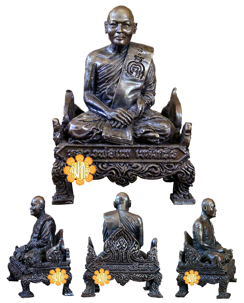 Image of Luang Phor Pae sitting on a chair was made in year B.E.2535 (1992). Size 3 inches lap-width ( Small model ) Solid chair.