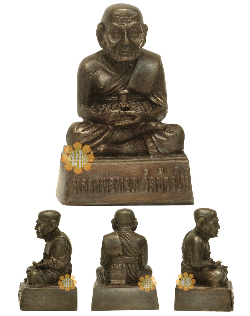 Worshipping Image of Phra Luang Phoo Thuat was made in year B.E.2555 at Wat Chang Hai (Patanee Province) Thailand. This statue was consecrated by monks at the temple and were made of Lohad material ( Metals ) with a Round Rian image of Luang Phor Thuat embedded at the bottom of the image.