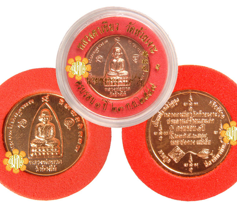Images of Luang Phor Thuat in Round Copper Phim made by Luang Phor Achaan Keow of Wat Hui Ork in Patanee Province .