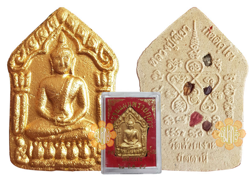 Image of Phra Khon Phen was consecrated by Luang Phor Achaan Keow of Wat Hui Ork (Patanee Province) in year 2558 (2015)). Situated five kilometers away from Wat Chang Hai. This image of Phra Khon Phen made of white phoong and back embedded with mineral stones.