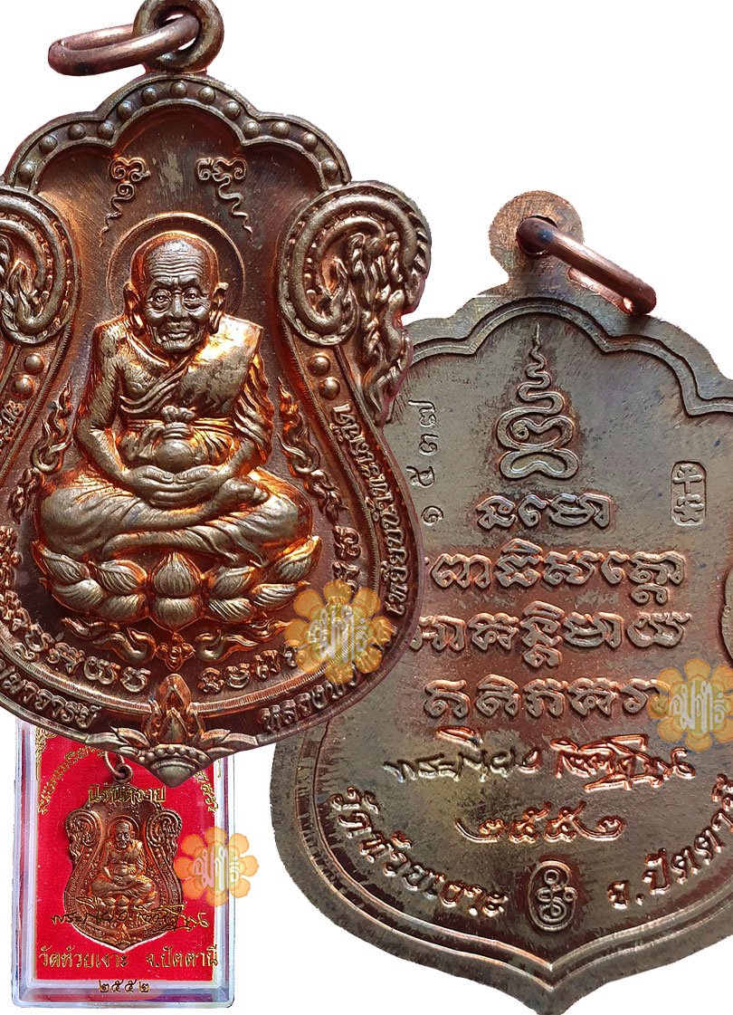 Image of Luang Phoo Thuat holding the crystal ball consecrated by Phor Taan Keow in year B.E. 2552 (2009) of Wat Hui Ork in Patanee Province, south of Thailand.