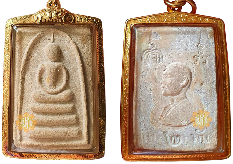 Made in Year B.E. 2511, 2nd batch of Somdej Luang Phor Pae made. All Pae Soorng Paan were hand phim, material include Luang Phor hair and gold chips. Cased with genuine gold (Thai gold grade90) mint condition