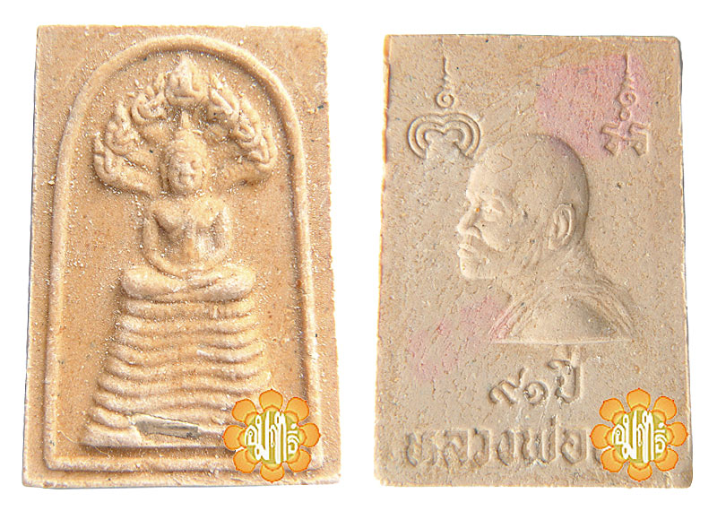 Phra Naa Prok was made in Year B.E.2539 (1996) by Luang Phor Pae when he was 91 years old , Image of a Buddha meditating with the protection of the Naga (a seven headed serpent). Materal white phoong.