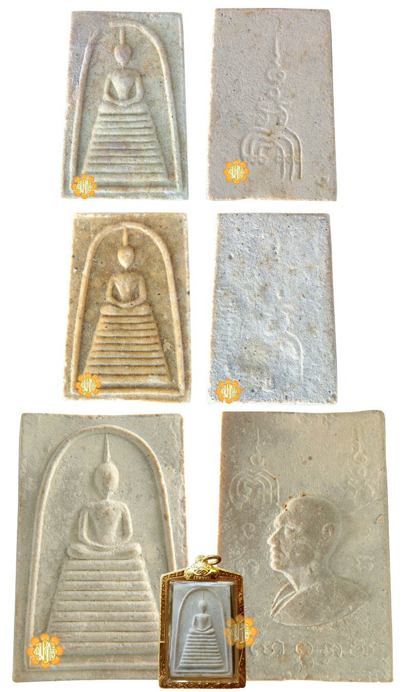 Made in Year B.E. 2515 and consecrated by Luang Phor Pae these small phim Somdej were made with old phoong mixed material and Luang Phor hairs. Rare items suitable for collection.