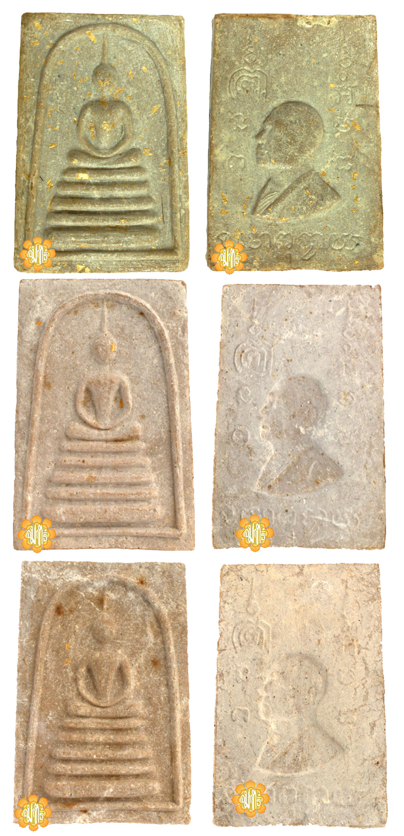 Made in Year B.E. 2515 and consecrated by Luang Phor Pae these Somdej were made with Gold Chip and Luang Phor hair with Luang Phor image at the back. It is special because it was in perfect condition and full of Gold Chips embedded during the making of this phim with rich material and were easily define to be genuine.