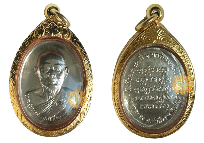 Silver Oval medallion made to celebrate Luang Phor 80 year old Birthday. 1st January 2528