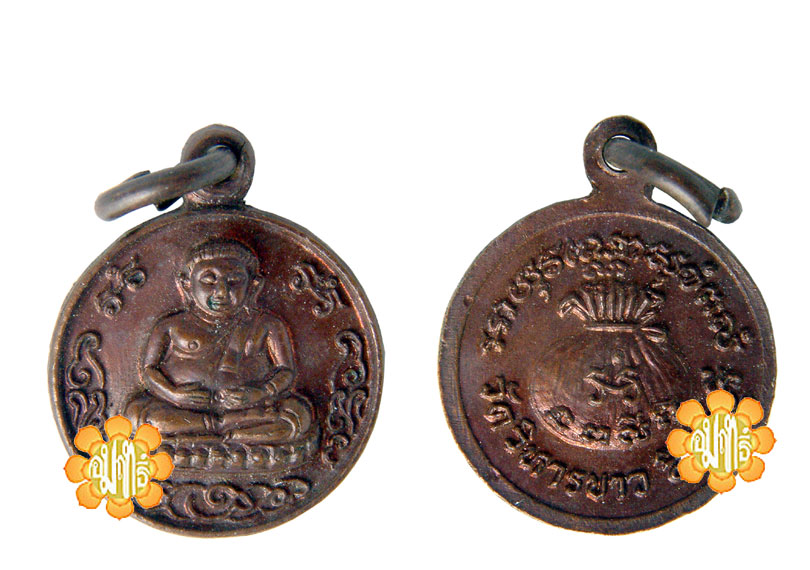Image of Sangkajai Small phim symbolize wealth amulet made in year B.E. 2518 (1975). Nat of Metal contends, The Buddha two hands of this amulets represent " keep Wealth " and one money bags at the back of the amulets.