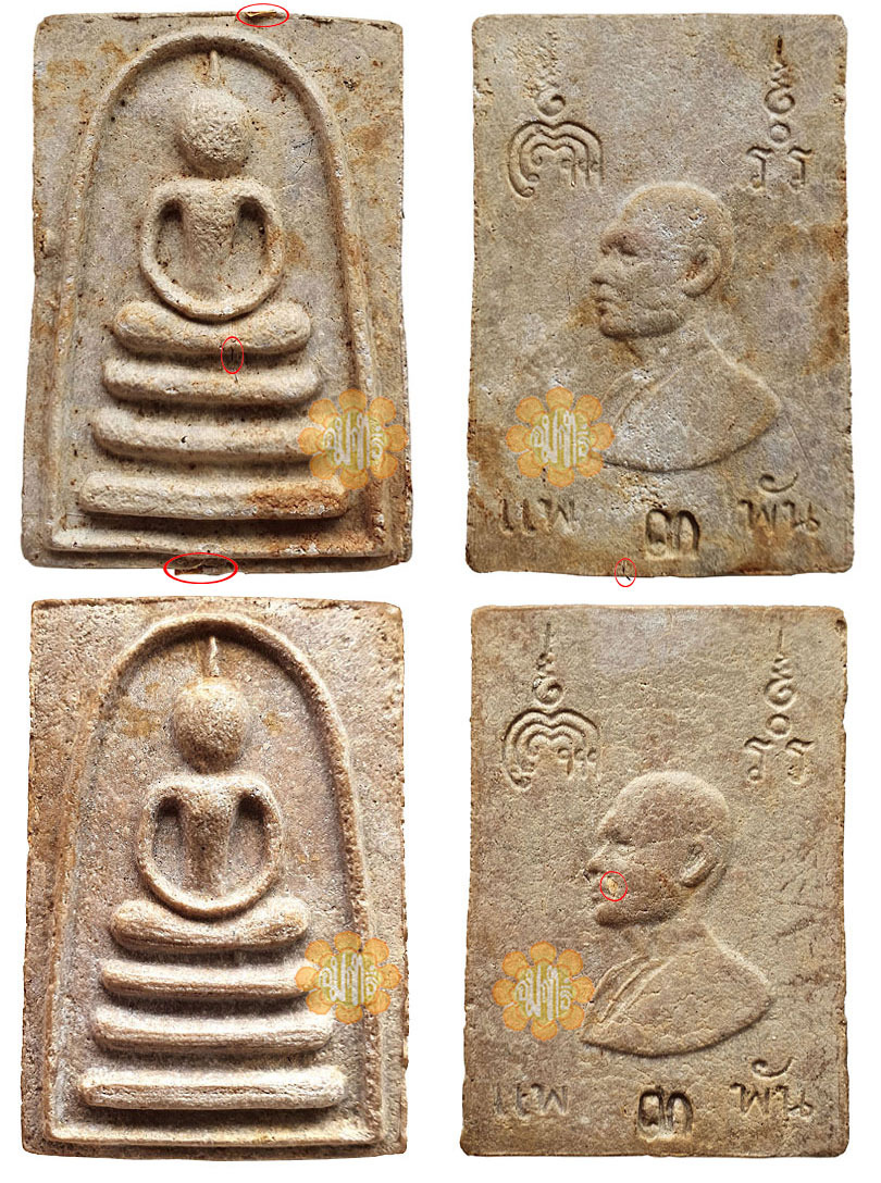 item 1&2 : Made and consecrated by Luang Phor Pae in Year B.E. 2512, 3rd batch of Somdej Luang Phor Pae made. This Pae Saam Paan were mechanical phim , materials include Luang Phor hairs " GaySaa" and gold chips circled in Red. Mint and Perfect condition.