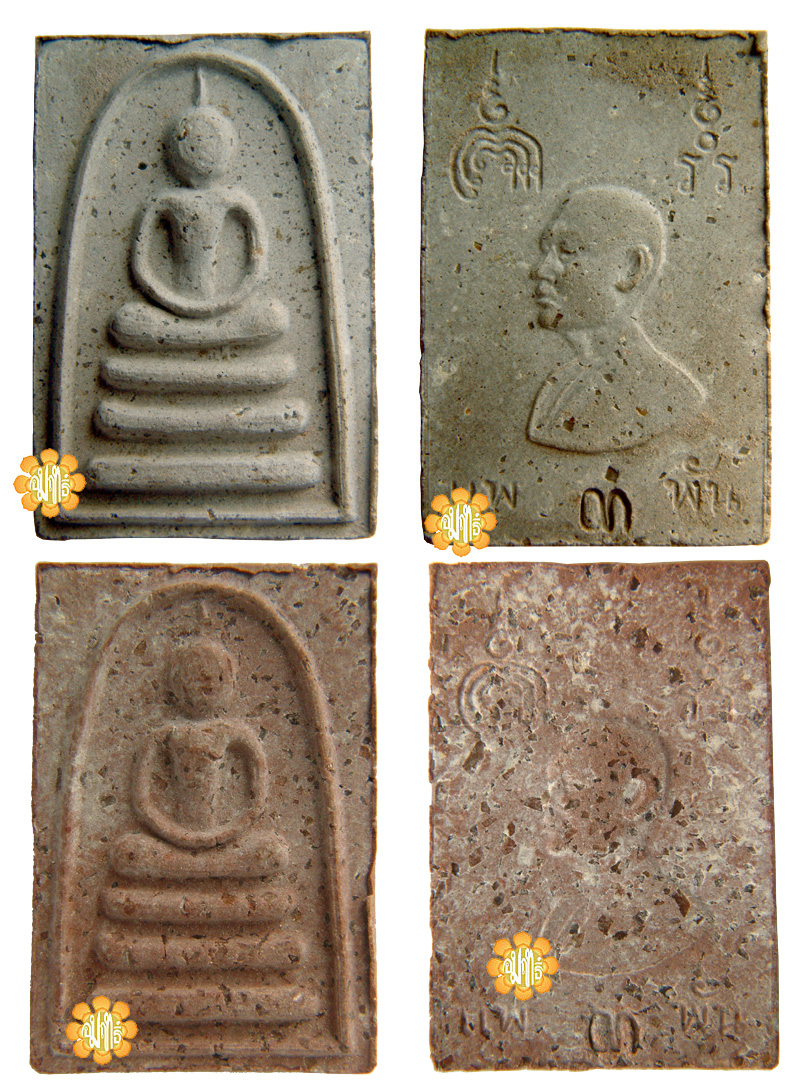 Made in Year B.E. 2516 and consecrated by Luang Phor Pae these Somdej were made in two colours - Grey and Maroon ( semi precious mineral stones - Laek ). A Thin size model (phim). Does not have Takrut embedded inside.
