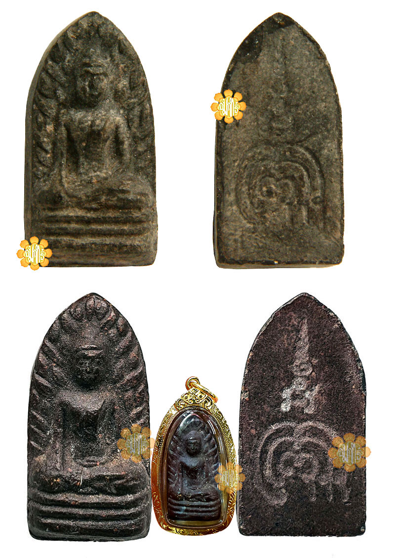 Phra Rod ( Escaped Amulet ) first issue mould, palm-leave-Black , powder Bailan texture , There were 2 phims one was the Big mould and the other Small mould made and consecrated during the year B.E. 2506 by Luang Phor Pae. There were a mixture of the " Pink Substance material and Luang Phor "GaySaa" hairs into them.