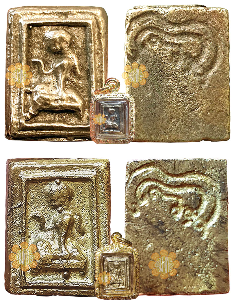 These very small and special Sand Casted " Lor Boran" Genuine GOLD mixed with Nawat metal Mae NaangQuat was made and consecrated by Luang Phor Pae of Wat Pikul Thong in year B.E. 2494 (1951) jointly consecrated by Chao Khun Sri, Luang Phor Wat Paknam (Sod), Luang Phoo Tok and others.