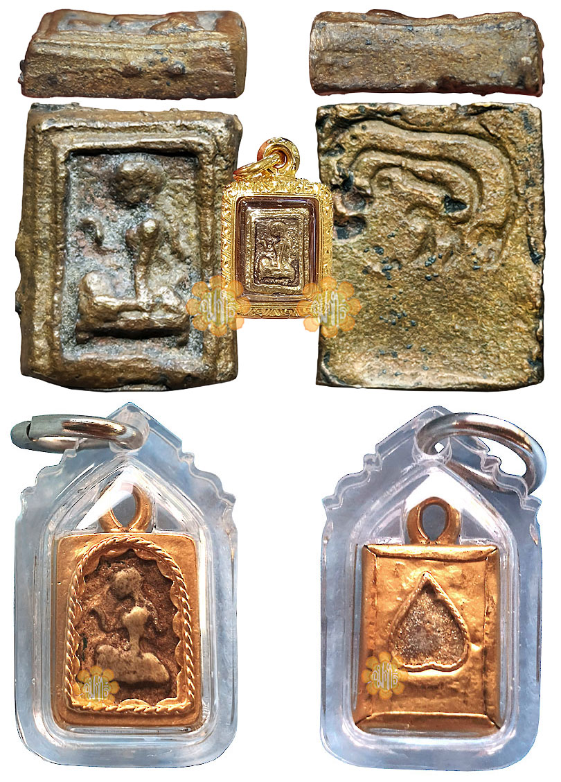 These very small and special Sand Casted " Lor Boran" Genuine GOLD mixed with Nawat metal Mae NaangQuat was made by Luang Phor Pae of Wat Pikul Thong in year B.E. 2494 (1951) joinly consecrated by Chao Khun Sri , Luang Phor Wat Paknam (Suk), Luang Phor Tok and others.