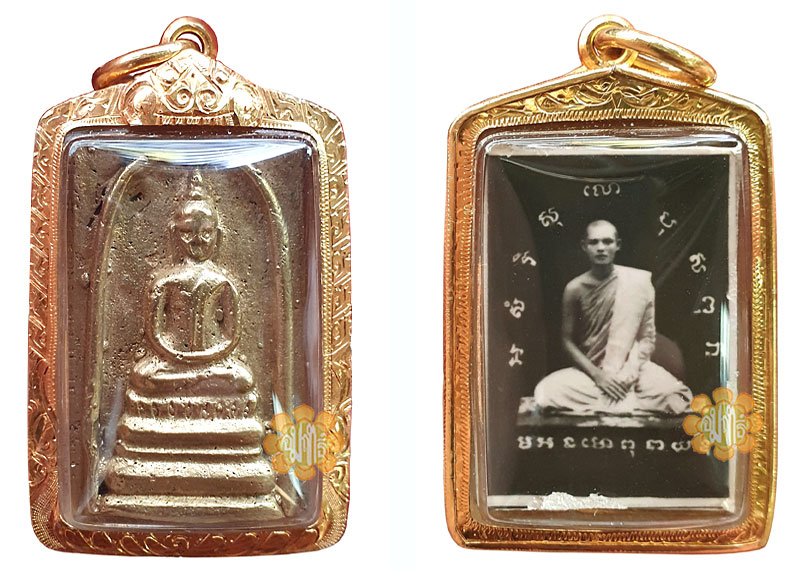 The first metal amulet " Phim Lerk" with the famous Signature Yaant of Luang Phor at the back. This amulet was case with Loop Thai of Luang Phor B.E.2496