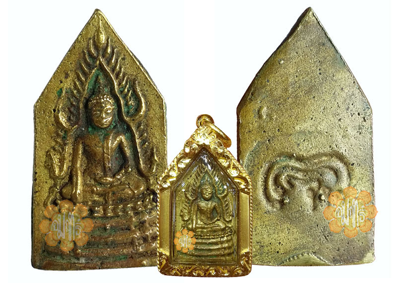 This very special Casted Nawat metal Phra Buddha Jinaraj was made by Luang Phor Pae of Wat Pikul Thong in year B.E. 2494 (1951) . Nawat material with mixed contends of metal including Gold contends in this amulet and the famous Signature Yaant of Luang Phor at the back.