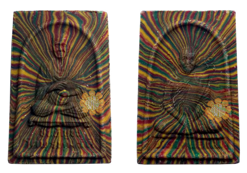 Images of Somdej lineser Achaan To & Luang Phor Pae made in year B.E. 2536 (1993) of coloured rolled phoong material.