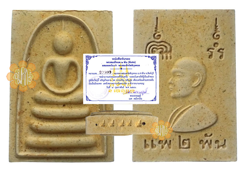 Phim Somdej made in Wat Pikul Thong and consecreated in year B.E. 2540 (1997) with itemized number on each amulet ( No. 99999) for this amulet.