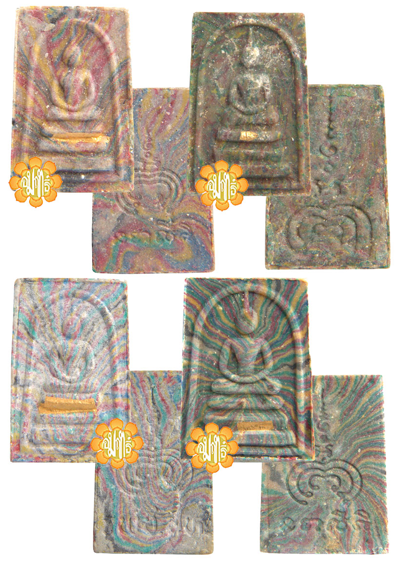 Made in Year B.E. 2536 ( 1993 ) by Luang Phor Pae, Image of Somdej Kanaen coloured lines with Luang Phor Yaan at the back of the amulet. Some with metal takrut embedded in the front steps of the Somdej.