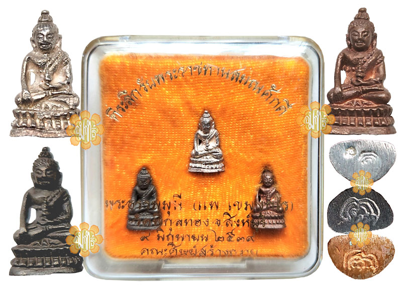 Singburi on 9th June 1996. A very special Set with Silver, Nawat, Copper material very small size amulets