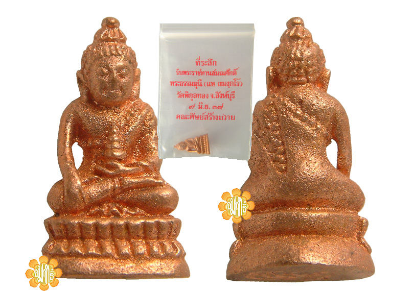 Made in Year B.E. 2539, Phra Chai Wat were made as a memory ( Thi-ra-rerk )on the day when Luang Phor Pae received the Royal Title of " Phra Tham-mu-nee " Pae Kha-mong-ka-roh at Wat Pikul Thong , Singburi on 9th June 1996. A very small size amulets