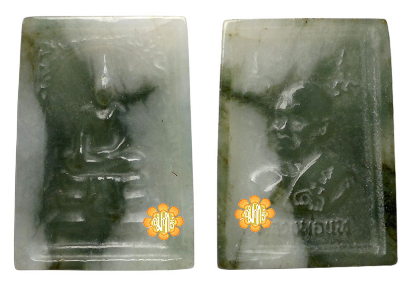These Rectangle shape Image of Phra Phratarnporn made in Ayuthaya by a craftman living in the temple . The Jade amulet had the image of Phra Phratarnporn in the front and Luang Phor image at the back.
