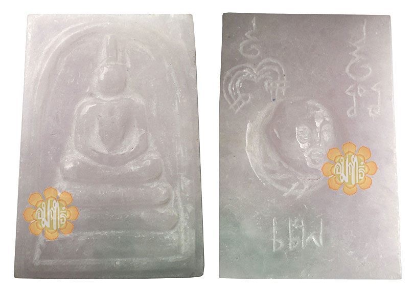 This beautiful green and purple Jade material Rectangle shape Image of Somdej were made in Ayuthaya by a craftman living in the temple . This front amulet was the image of omdej and the back was the image of Luang Phor.