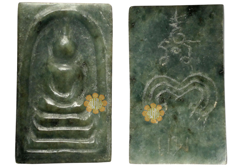 This very green Jade material Rectangle shape Image of Somdej were made in Ayuthaya by a craftman living in the temple .