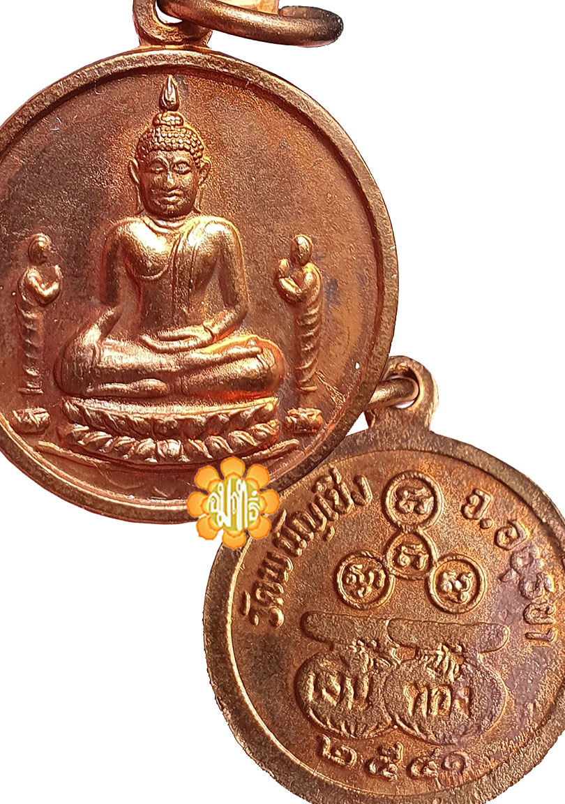 Phra Rian Sam Pao Kong was from Re-cycled Metals consecrated at Wat Phanan Choeng in year B.E. 2541. There were 2 moneybags at the back of the amulet.